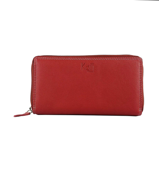 حقيبة يد نسائية بسحاب مزدوج من الجلد الطبيعي